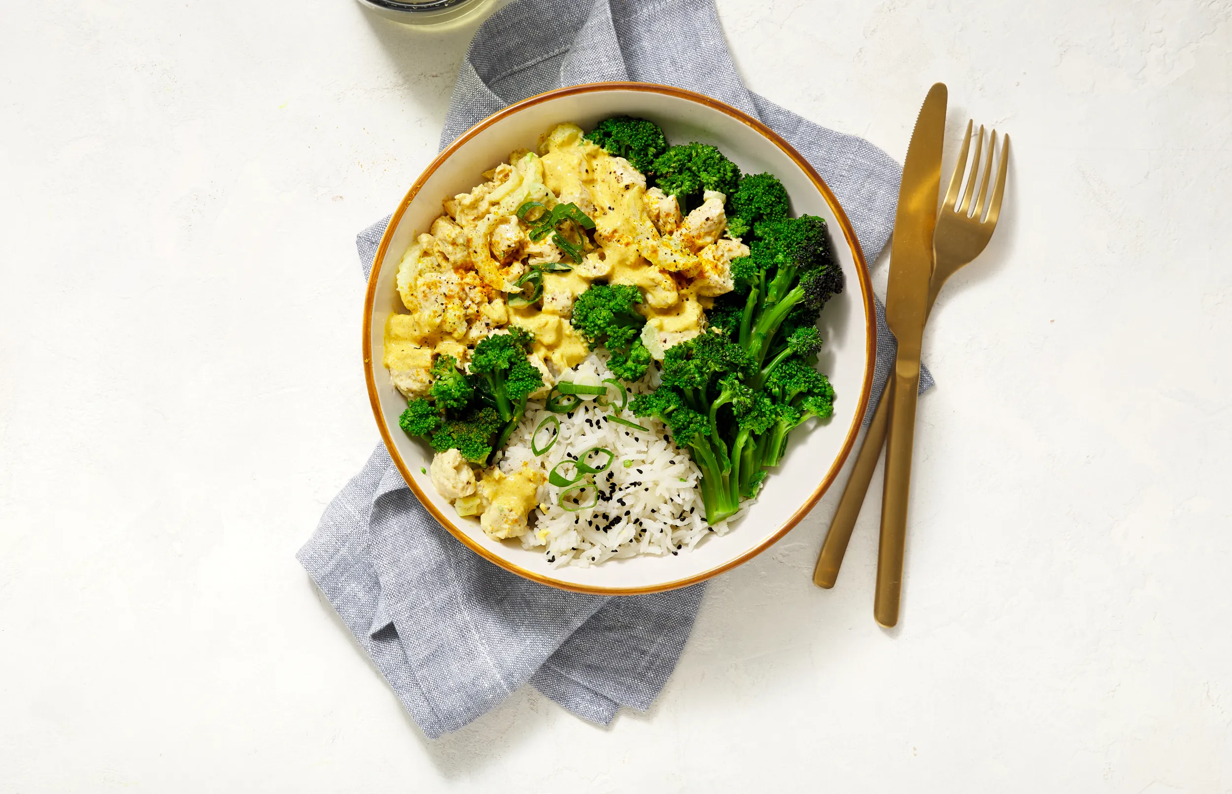 Meng vlak voor het aan tafel gaan de afgegoten gewelde abrikoos bij de Coronation fava. Serveer met de rijst en broccoli.