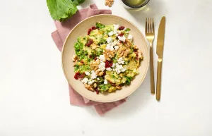 Serveer de stamppot met de walnoot en brokkel 75 g feta erover.