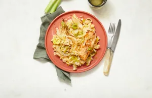 Roer de venkel door de risotto. Breng op smaak met peper, zout en limoensap. Voeg een flinke scheut olijfolie extra vierge toe en dek af.