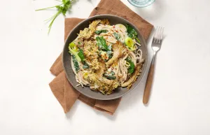Volkoren spaghetti met spinazie-prei à la crème en gegratineerde oesterzwammen