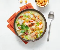 Goed om te weten: De bouillabaisse visstukjes kunnen heilbot, heek, kabeljauw, schol en/of zalm bevatten.