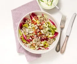 Verwarm de oven voor op 200 graden en bak 2 stuks landbrood ca. 10 minuten. Of snij het aantal gewenste plakjes en rooster die in de broodrooster of oven. In dat geval hoef je het brood niet eerst af te bakken.