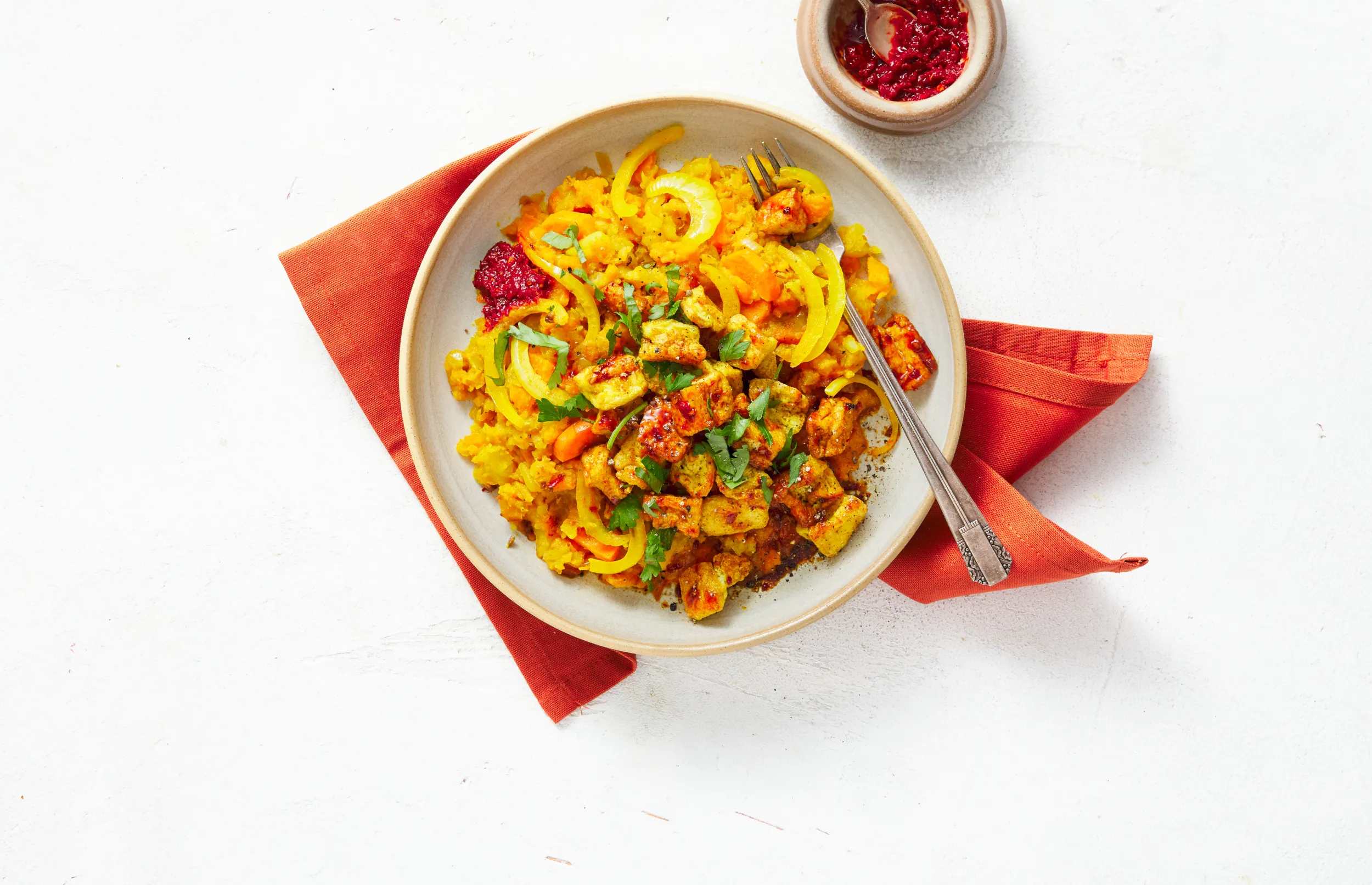 Goed te weten: Het specerijenmengsel voor 2p bevat 1 tl komijnzaad en 1tl kurkuma. In het bakje voor 4p zit de dubbele hoeveelheid.